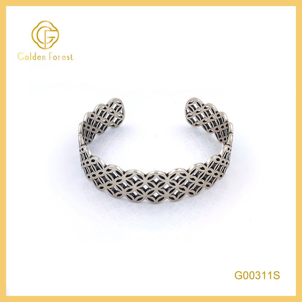 Silver Open Cuff Geometric – Patterned Retro Bracelet for Women