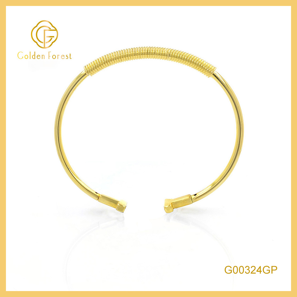 Gold Plated Open Ended Coil Wrapped Minimalist Bangle for Women