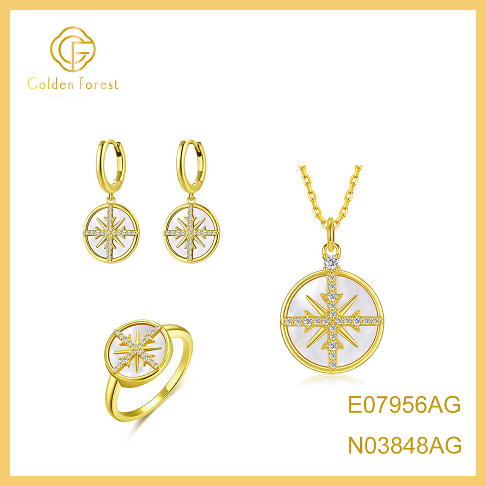 Vintage Mother of Pearl Celestial Huggie Hoops Necklace Set