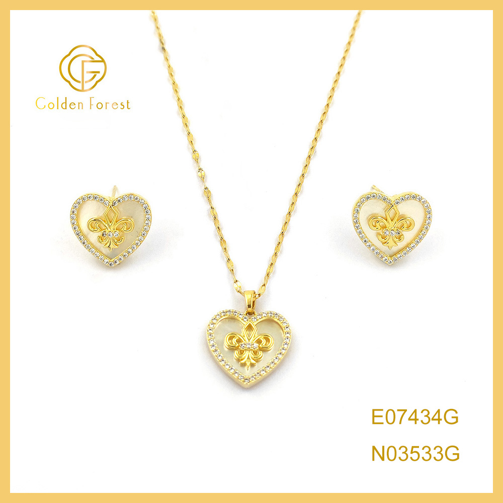 Gold Plated Heart Earring Necklace Wedding Jewelry Sets with Mother of Pearl