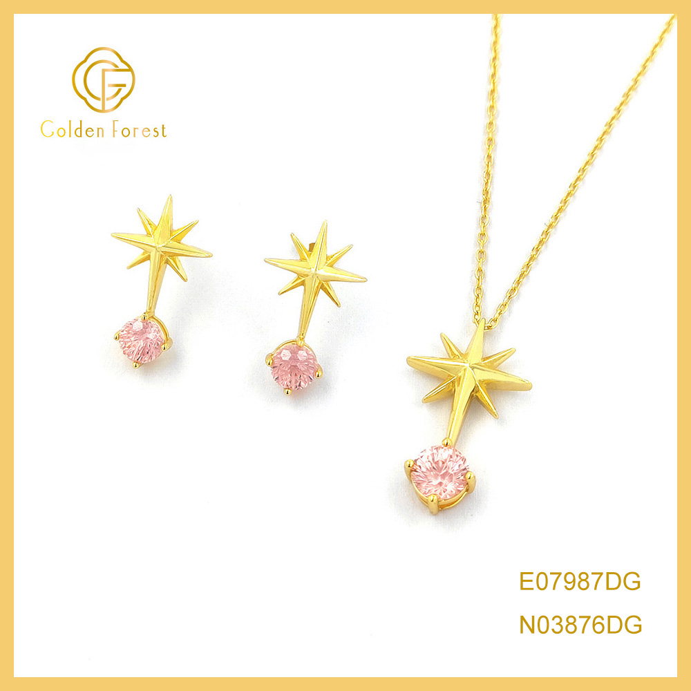 Celestial Colored CZ Star Earring Necklace Jewelry Set Crushed Ice for Women