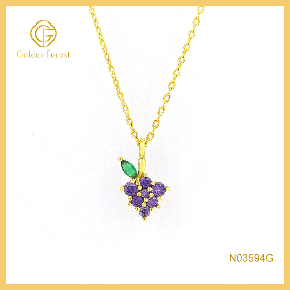 Gold Plated Purple Grape Fruit Necklace with Cubic Zirconia