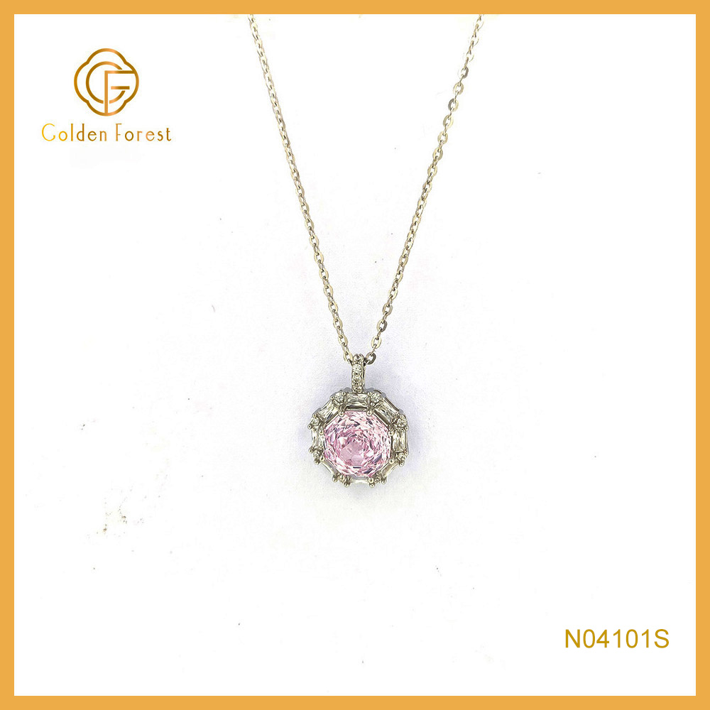 Geometric Pink Stone Halo Necklace Valentine’s Gift Romantic Design