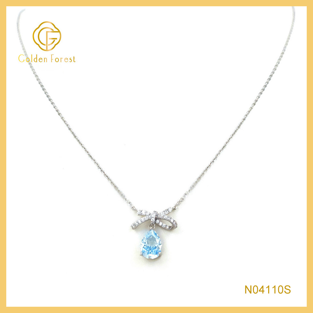 925 Silver Bow Knot Pendant Necklace with Ocean Blue Pear Stones