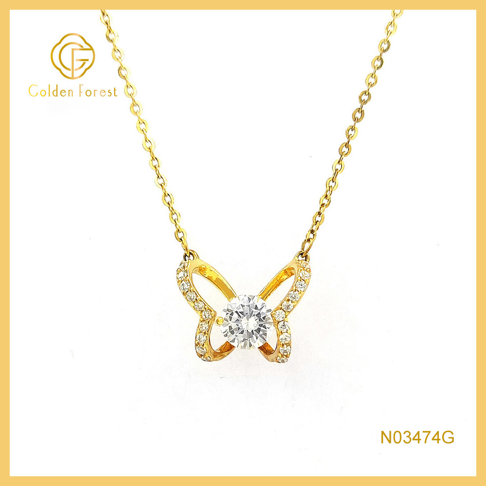 Tiny 925 Silver Butterfly Pendant Necklace with Cubic Zirconia