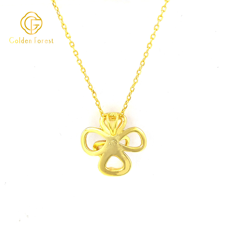 925 Silver MOP Sculpture Flower Pendant Necklace wiht Gold Plated & CZ