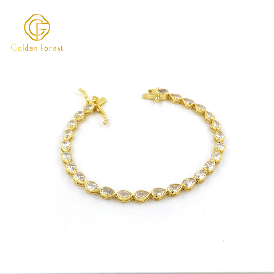 Gold Plated Teardrop Shaped Zircon Bracelet Glamorous Style for Fashion Conscious Women