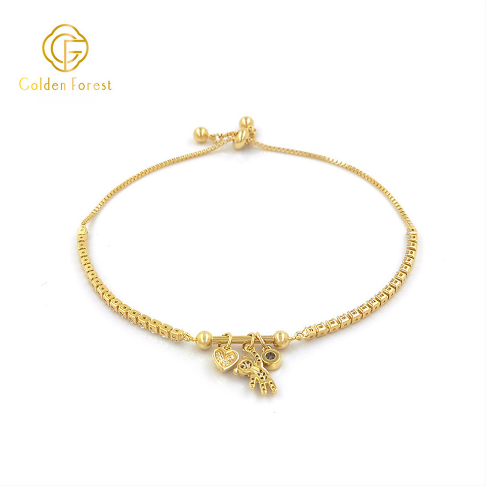 This gold – plated adjustable bracelet features a delicate chain adorned with a row of shimmering, diamond – like stones.