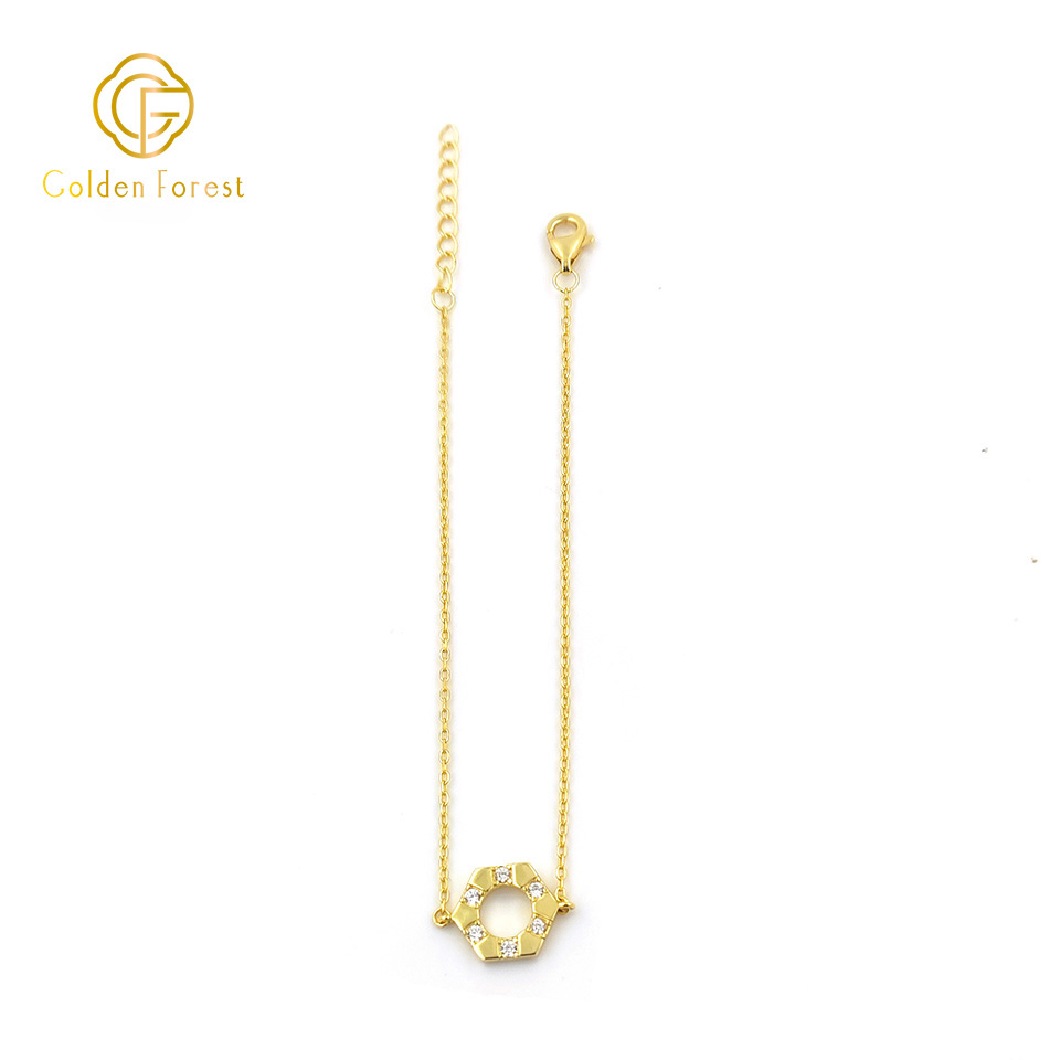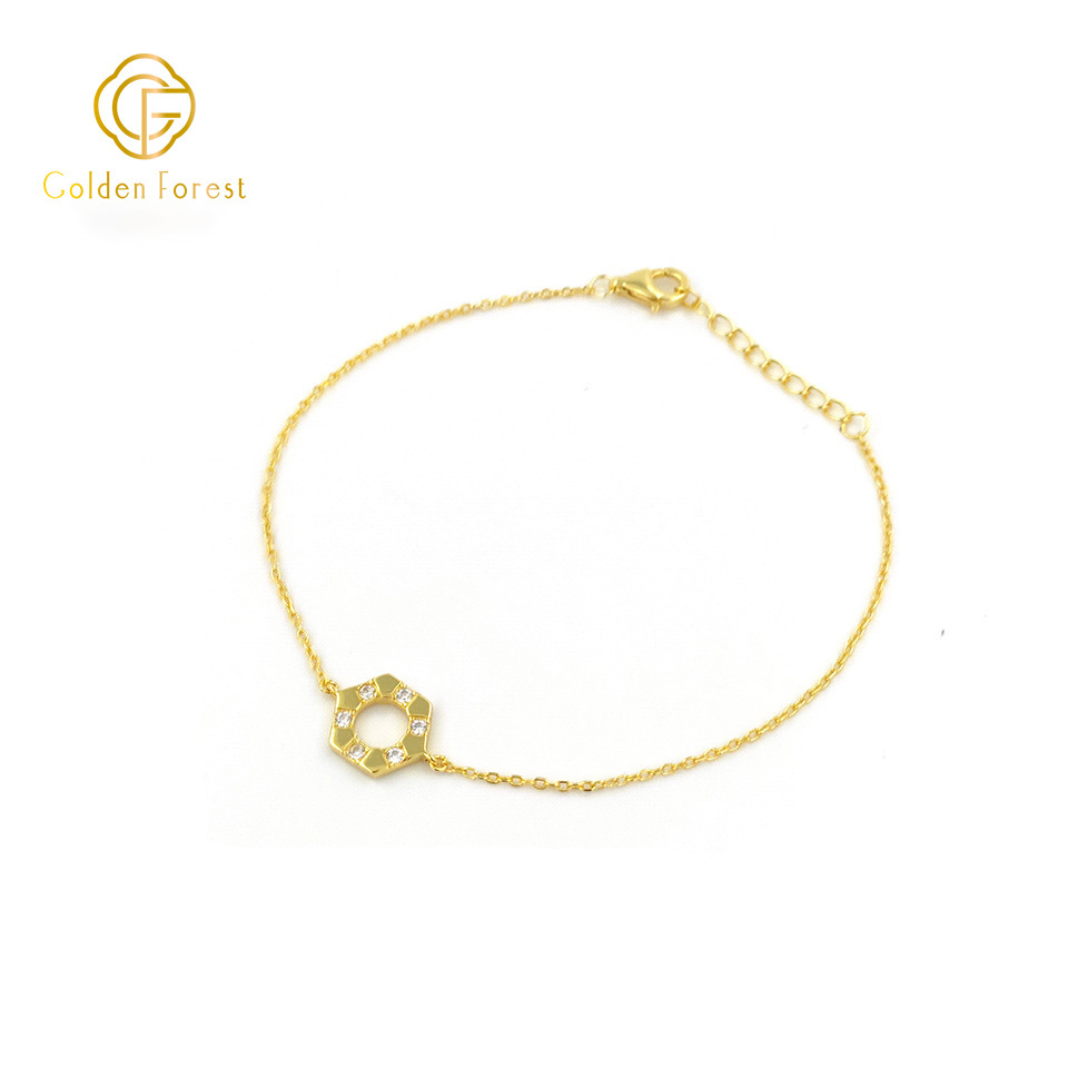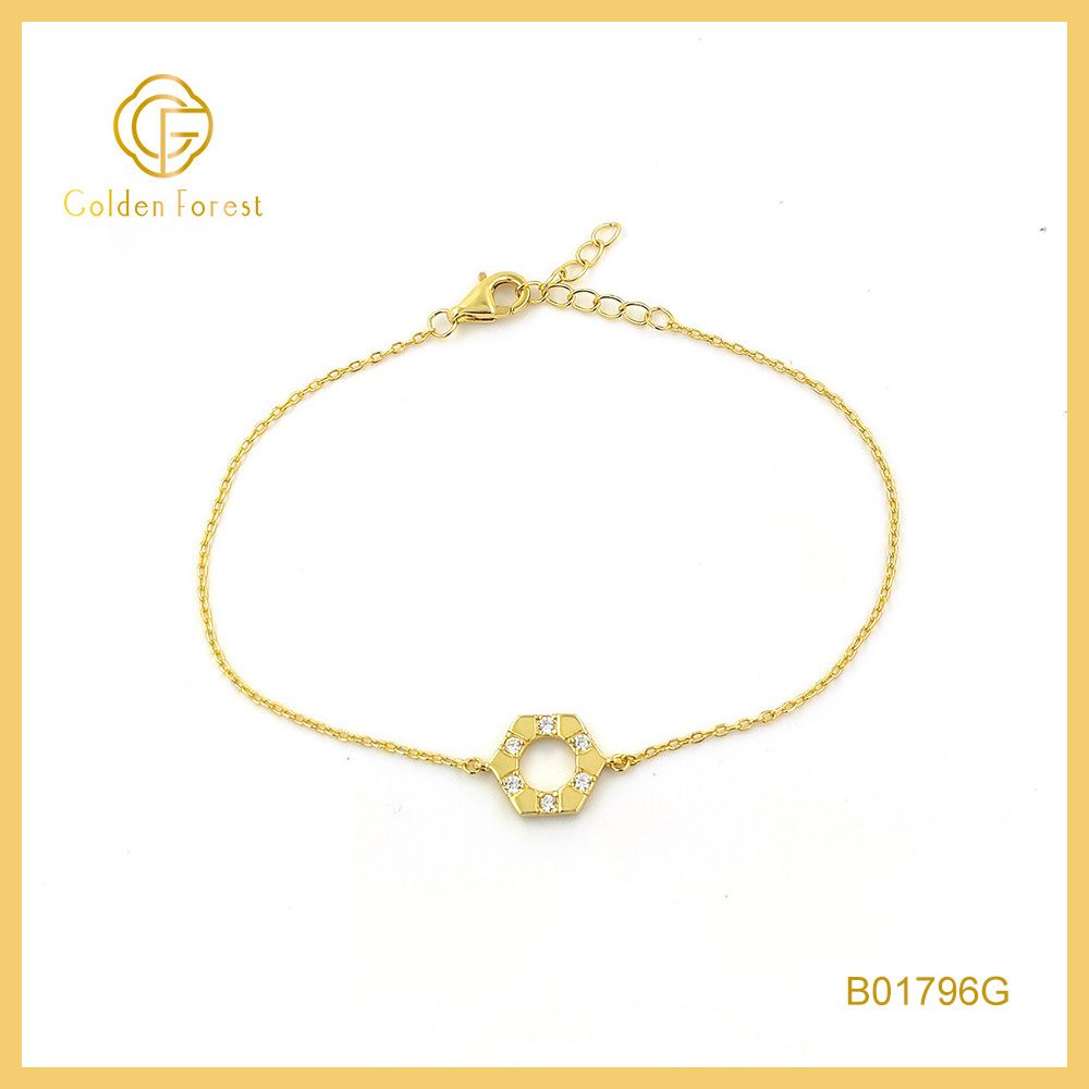 This elegant bracelet features a fine gold – plated chain, with a hexagonal – shaped charm as its centerpiece.
