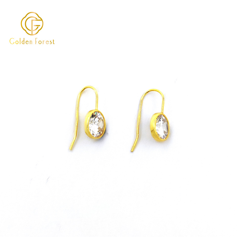 Each earring has a slender hook, from which dangles a clear crystal, creating a simple yet sophisticated look.