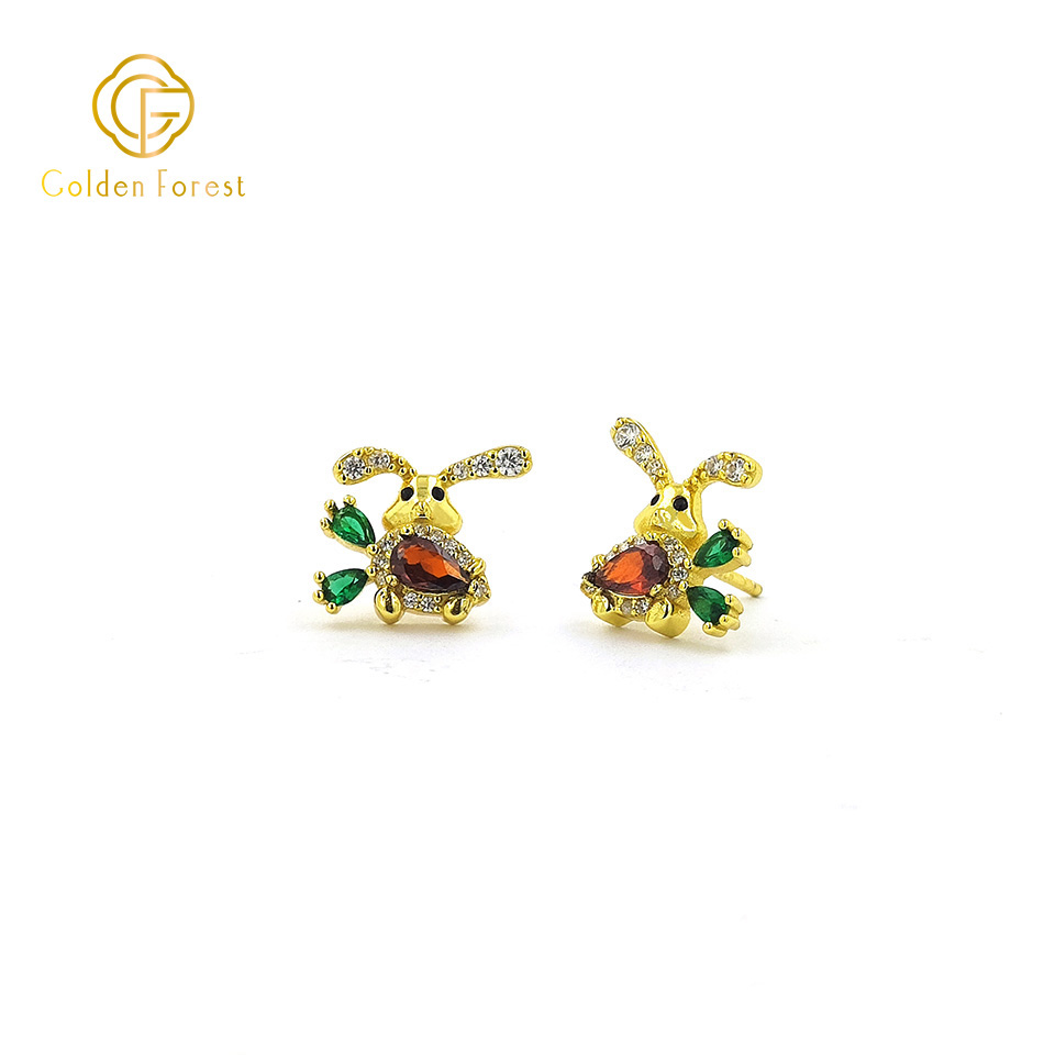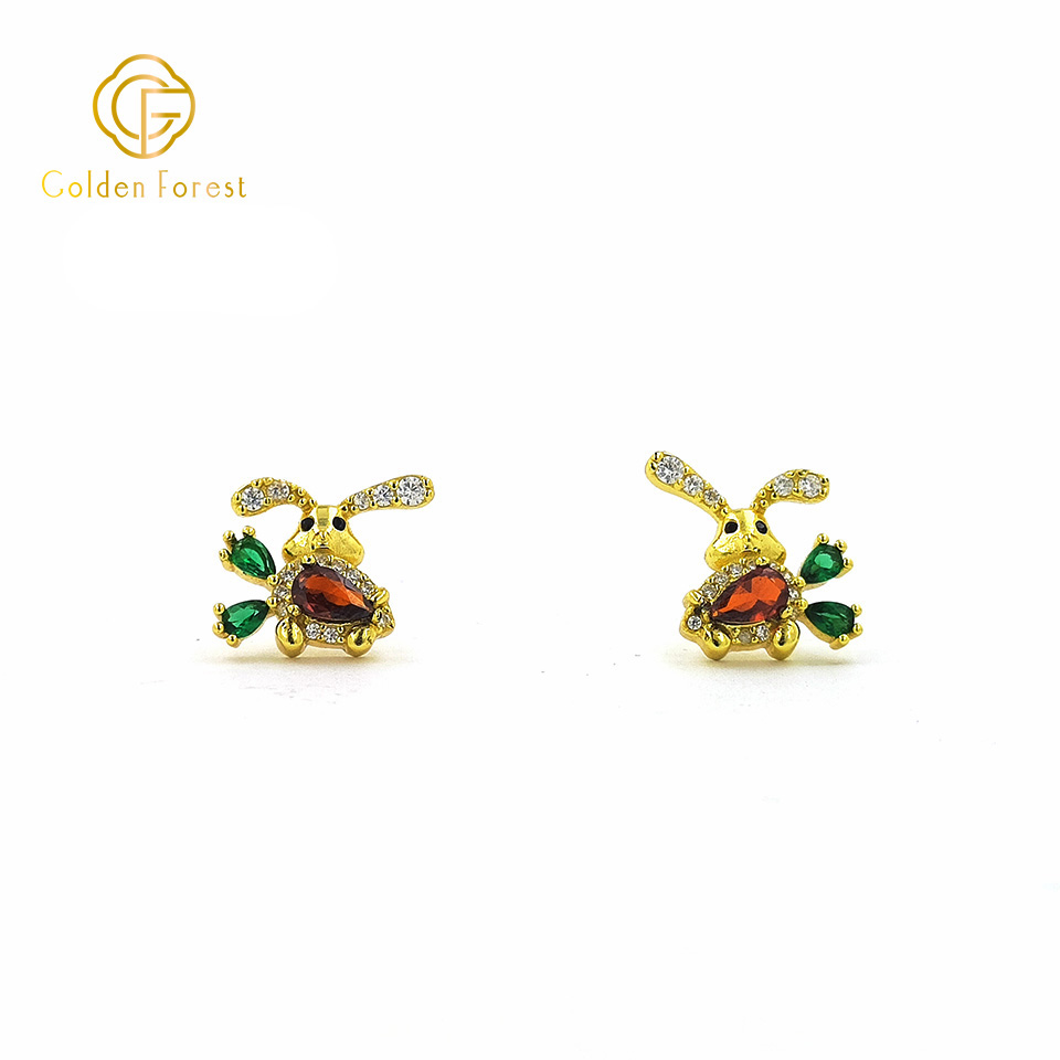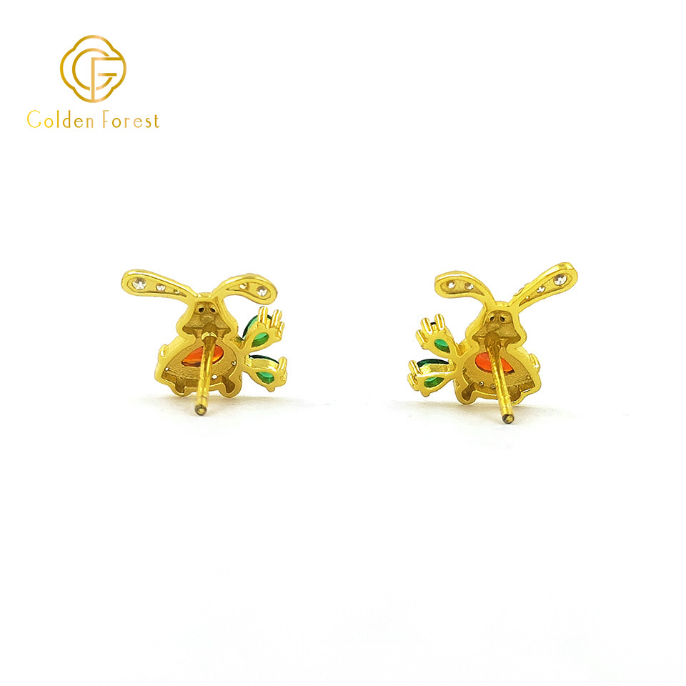 These adorable stud earrings feature a charming bunny design with a gold – plated finish.