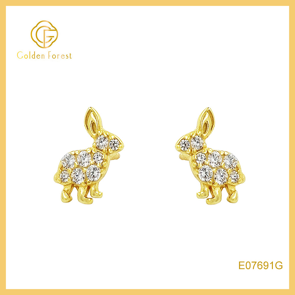These adorable stud earrings feature a charming bunny design with a gold – plated finish.