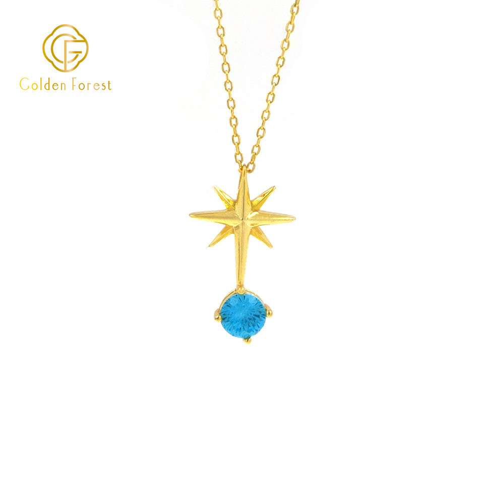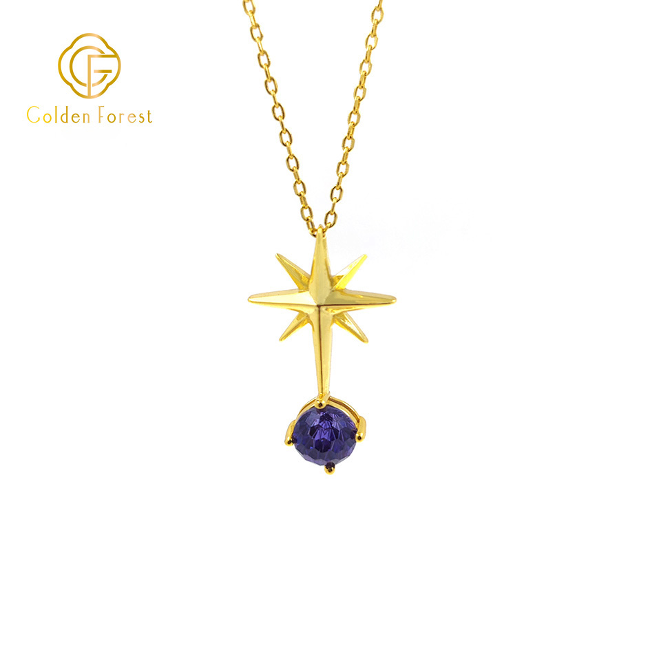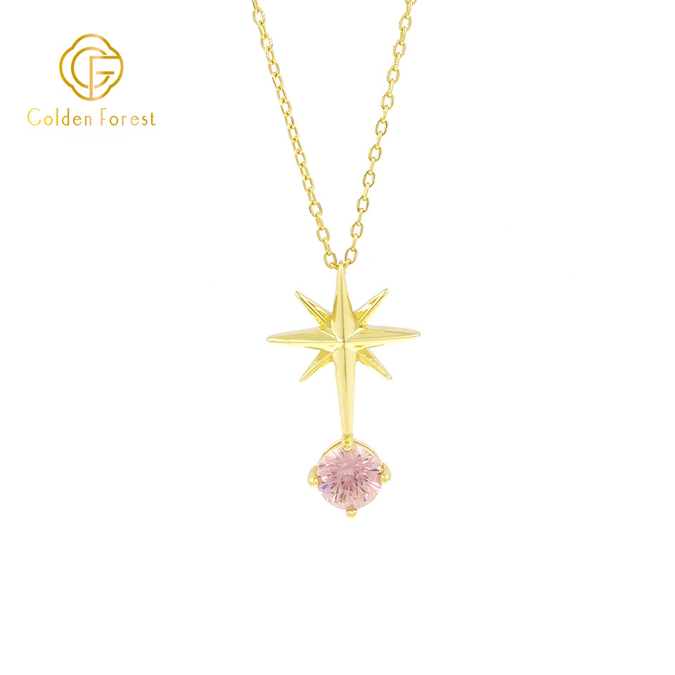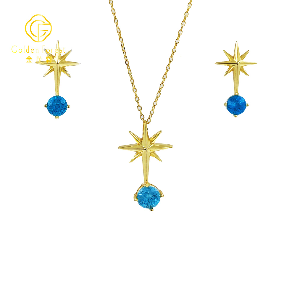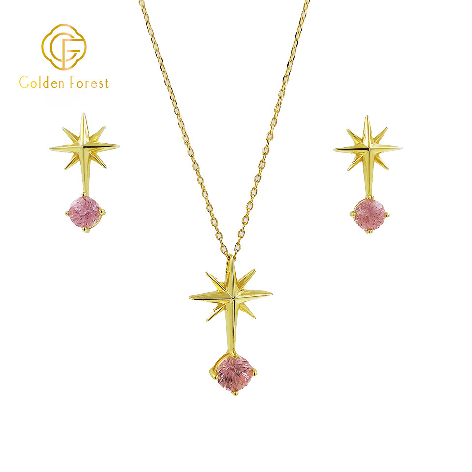 This exquisite jewelry set, crafted from 925 sterling silver and finished with luxurious gold plating, includes a necklace and a pair of stud earrings.