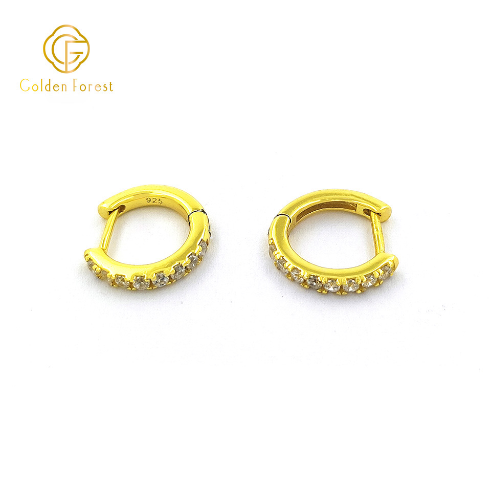 Delicate Gold Finished Circle Huggie Hoops Paved Micro Zirconia