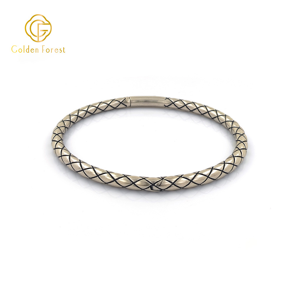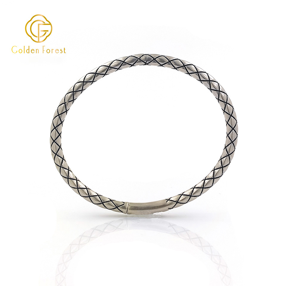 Make a fashion statement with our Silver – Colored Braided Textured Bangle.