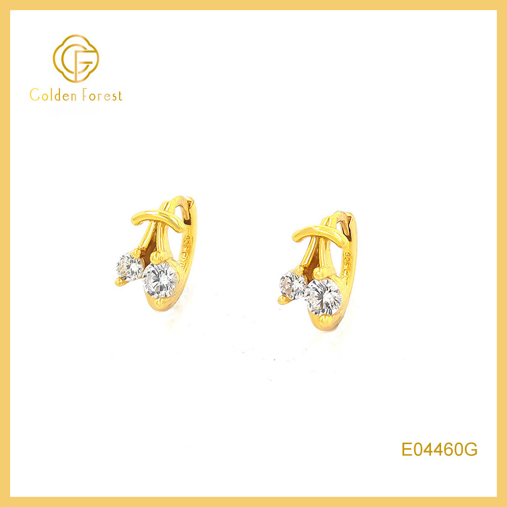Gilded Cherry Fruit Huggie Hoops CZ Stone Gold Plated for Women