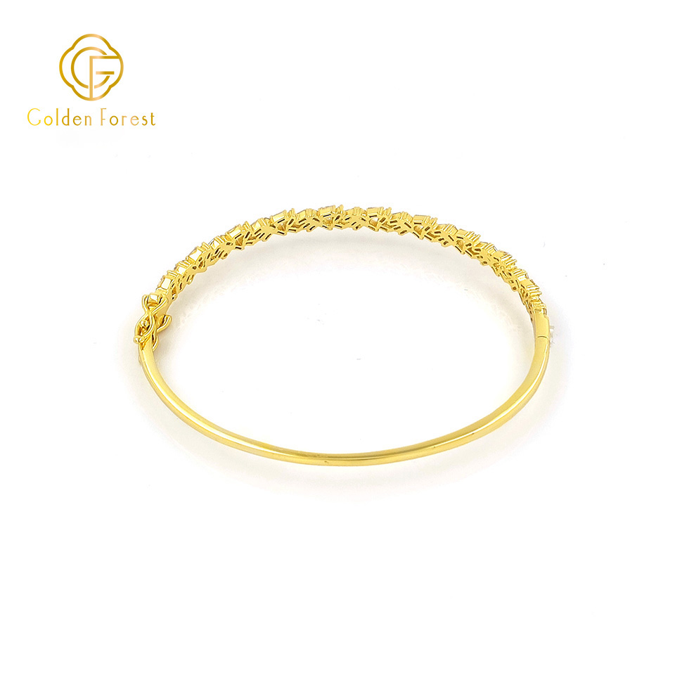 This opulent bangle for women features baguette – cut stones set on a gold – toned surface, creating a dazzling and sophisticated look.