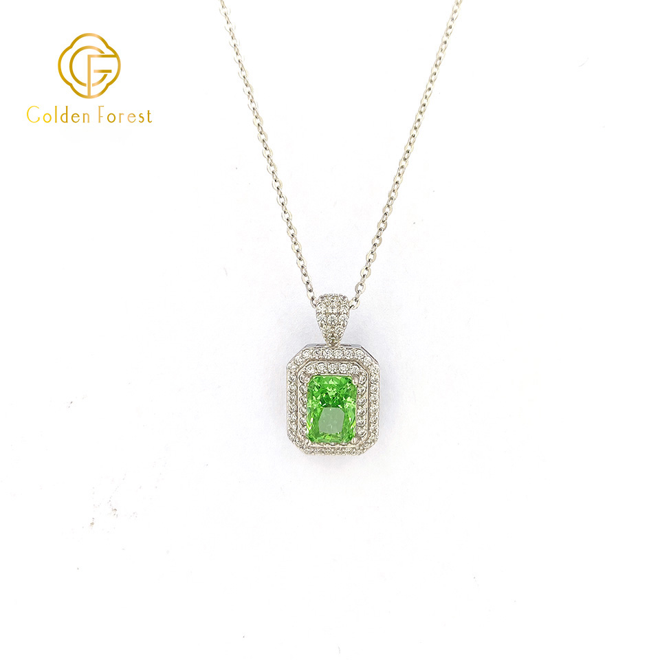 The pendant showcases a striking square – cut green cubic zirconia (CZ) stone at its center, radiating a vivid, alluring green hue.