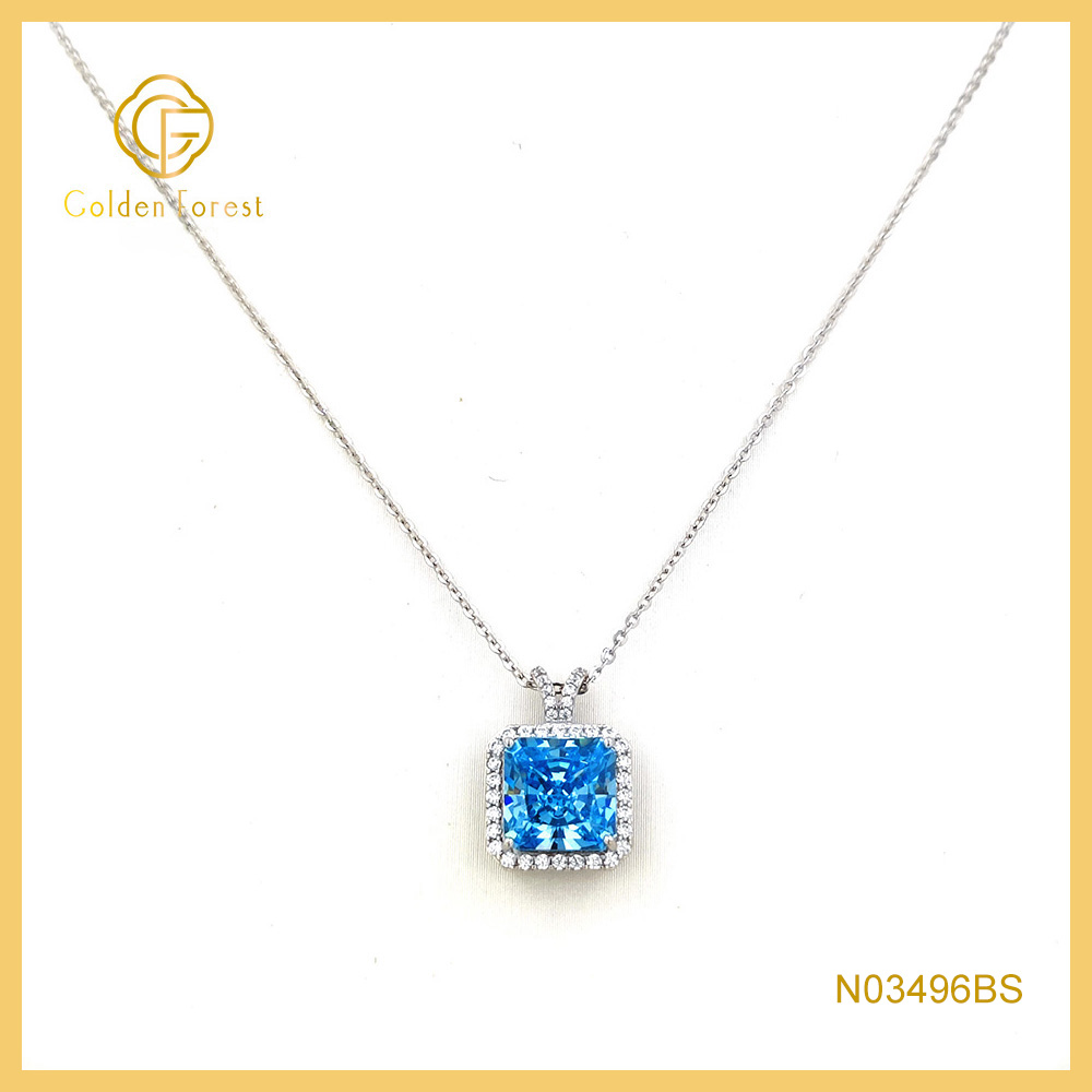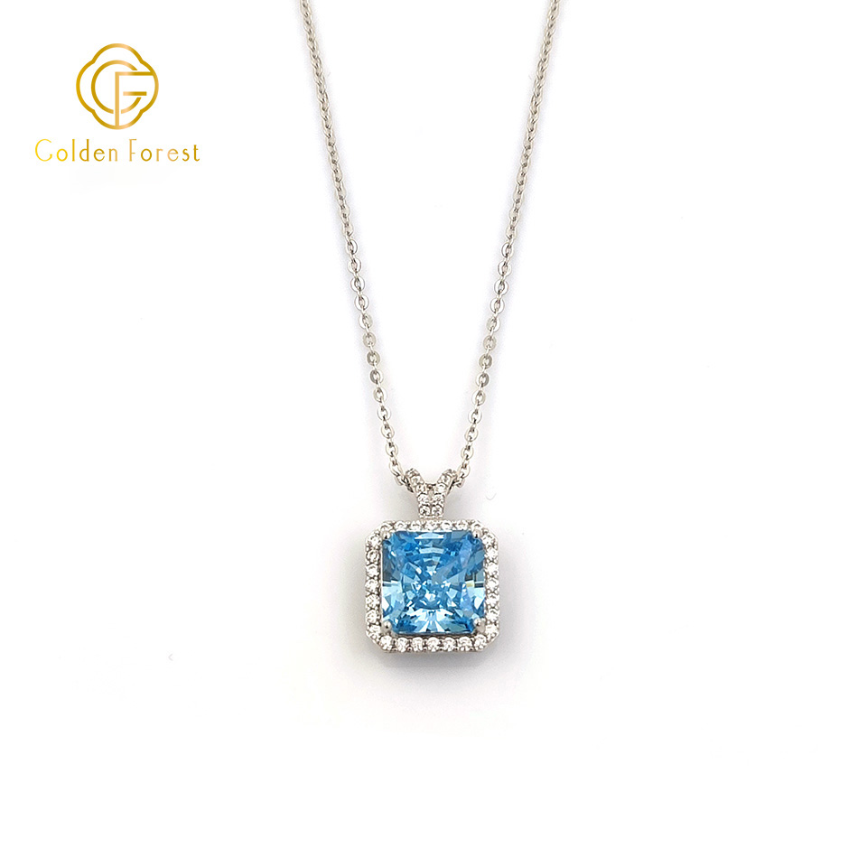 The pendant is the highlight, featuring a large square – cut blue cubic zirconia (CZ) stone at its center.