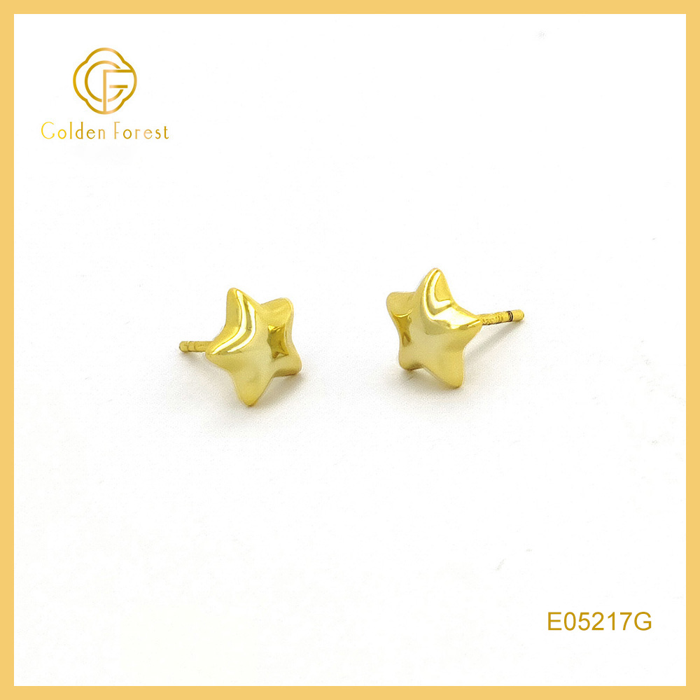 Each earring showcases a star shape with a smooth, polished surface, creating a cute and whimsical look.