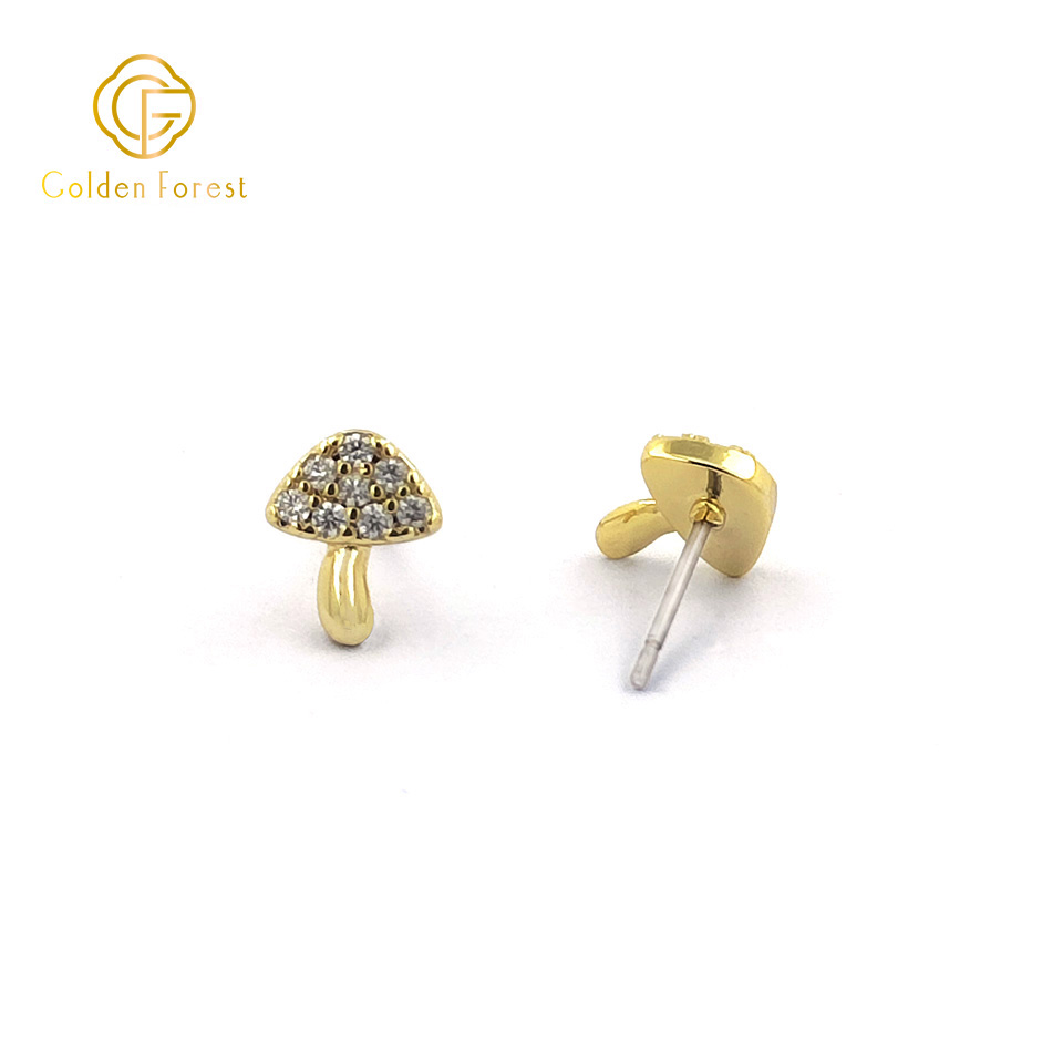 Each earring showcases a mushroom shape, adorned with sparkling clear crystals, creating a nature – inspired and playful look.
