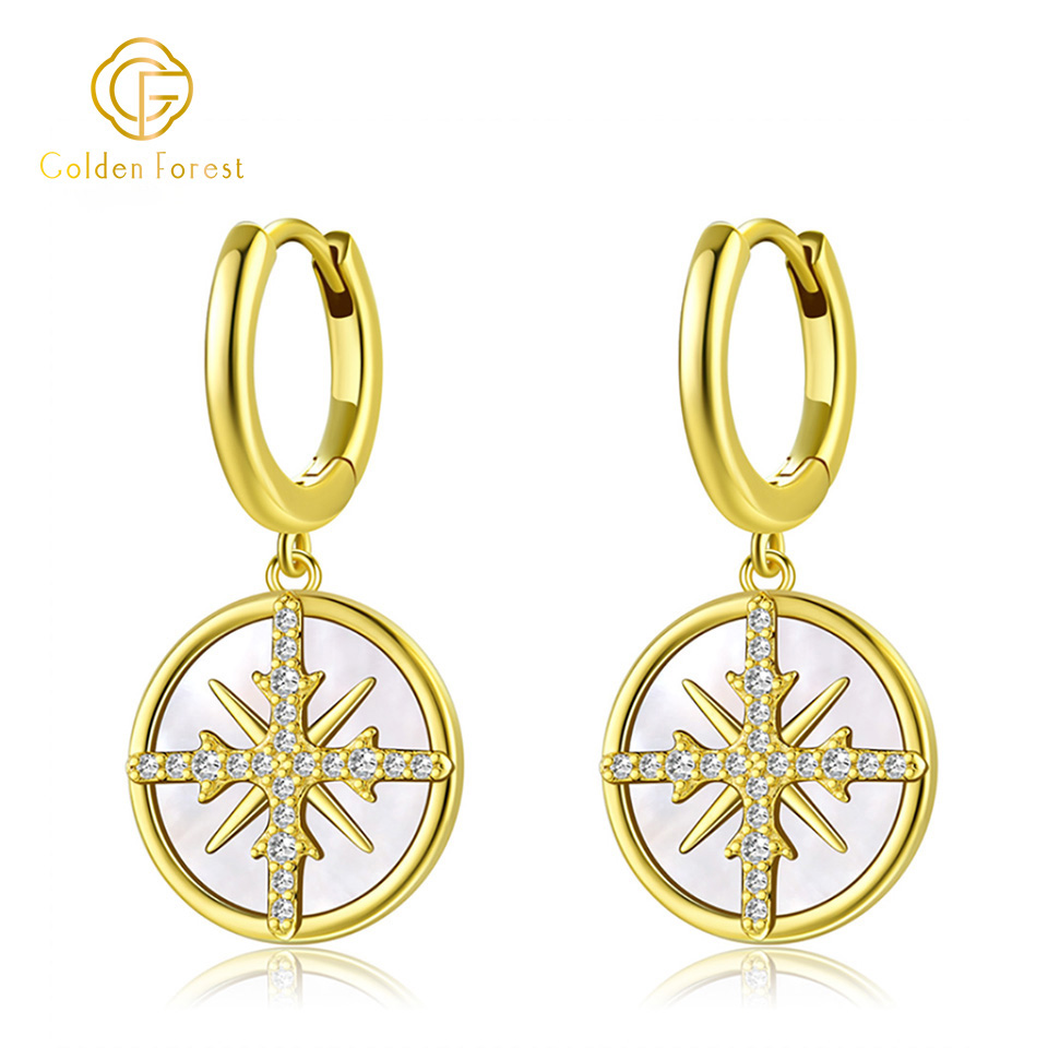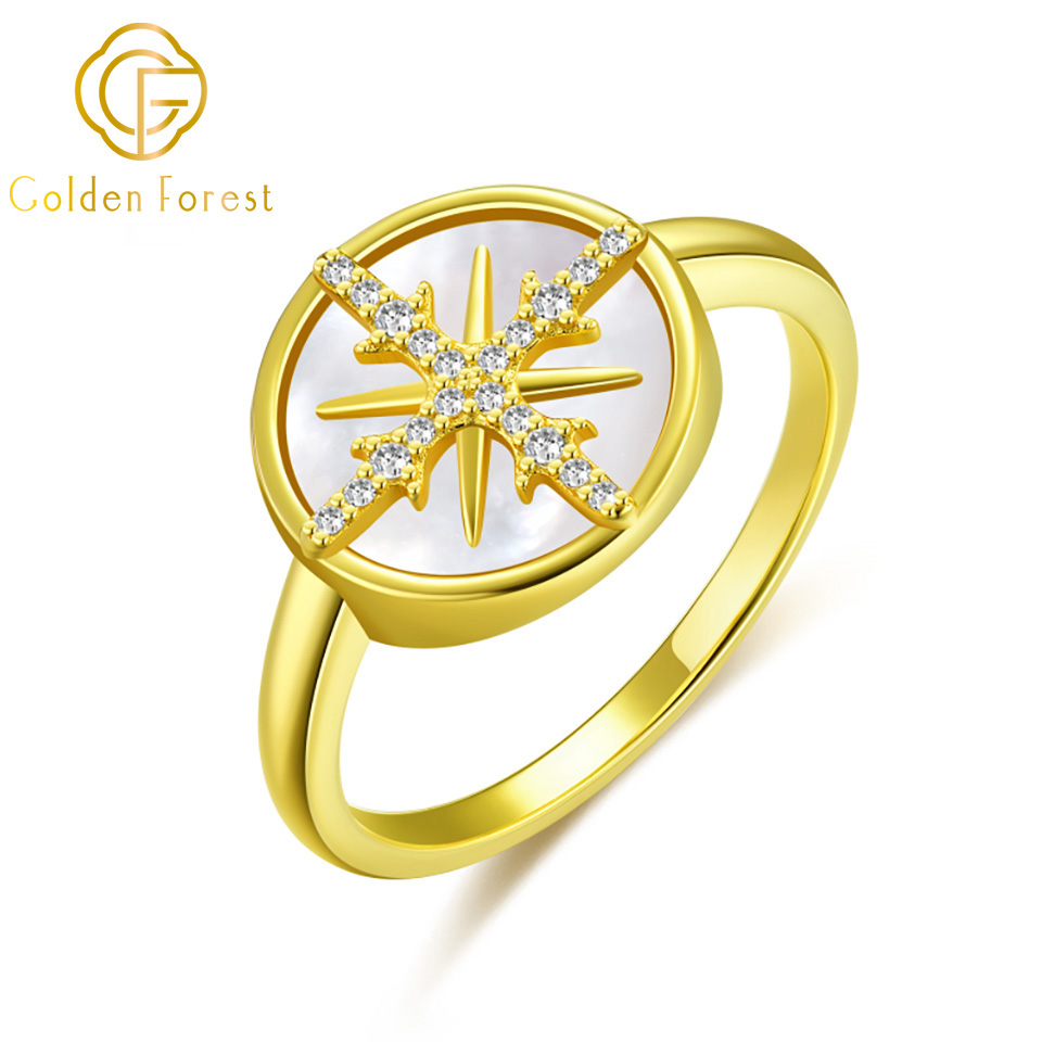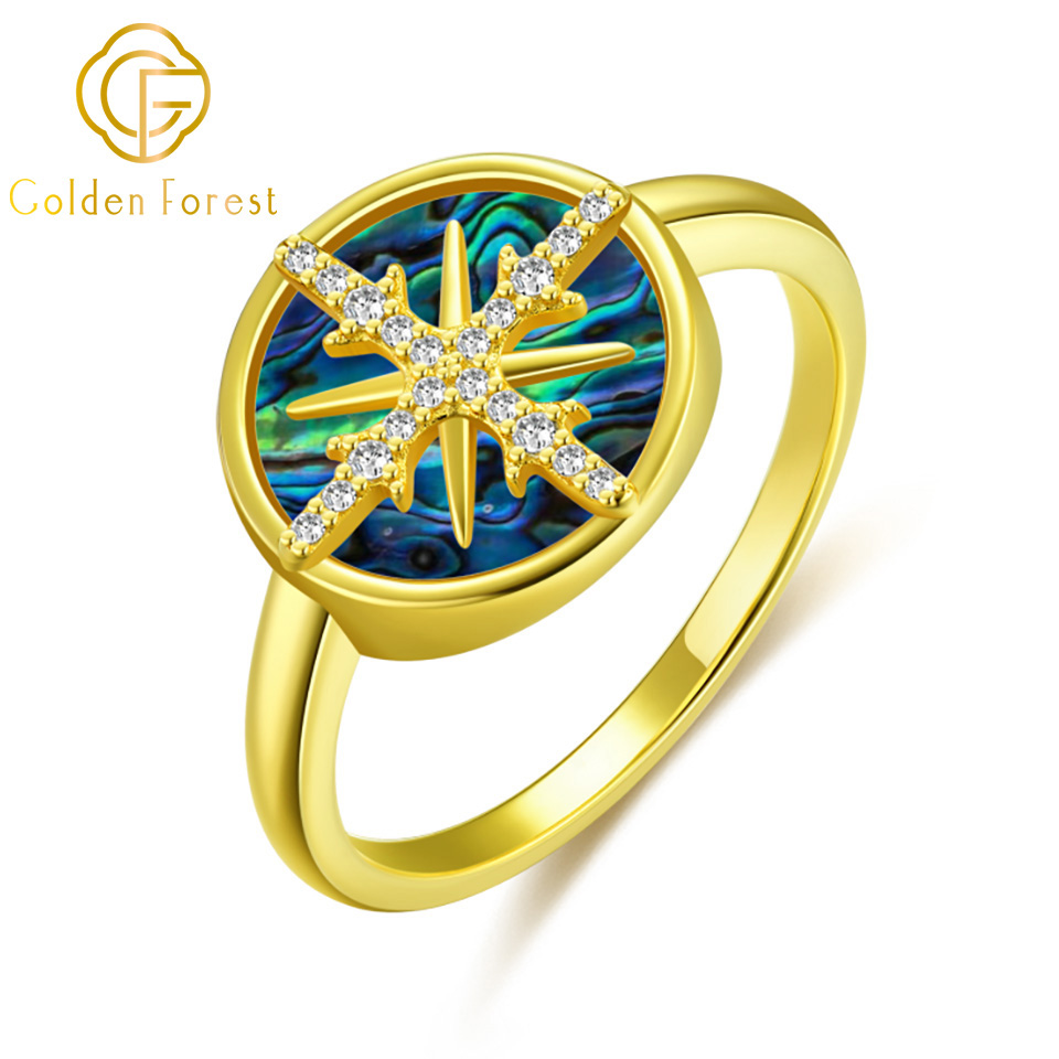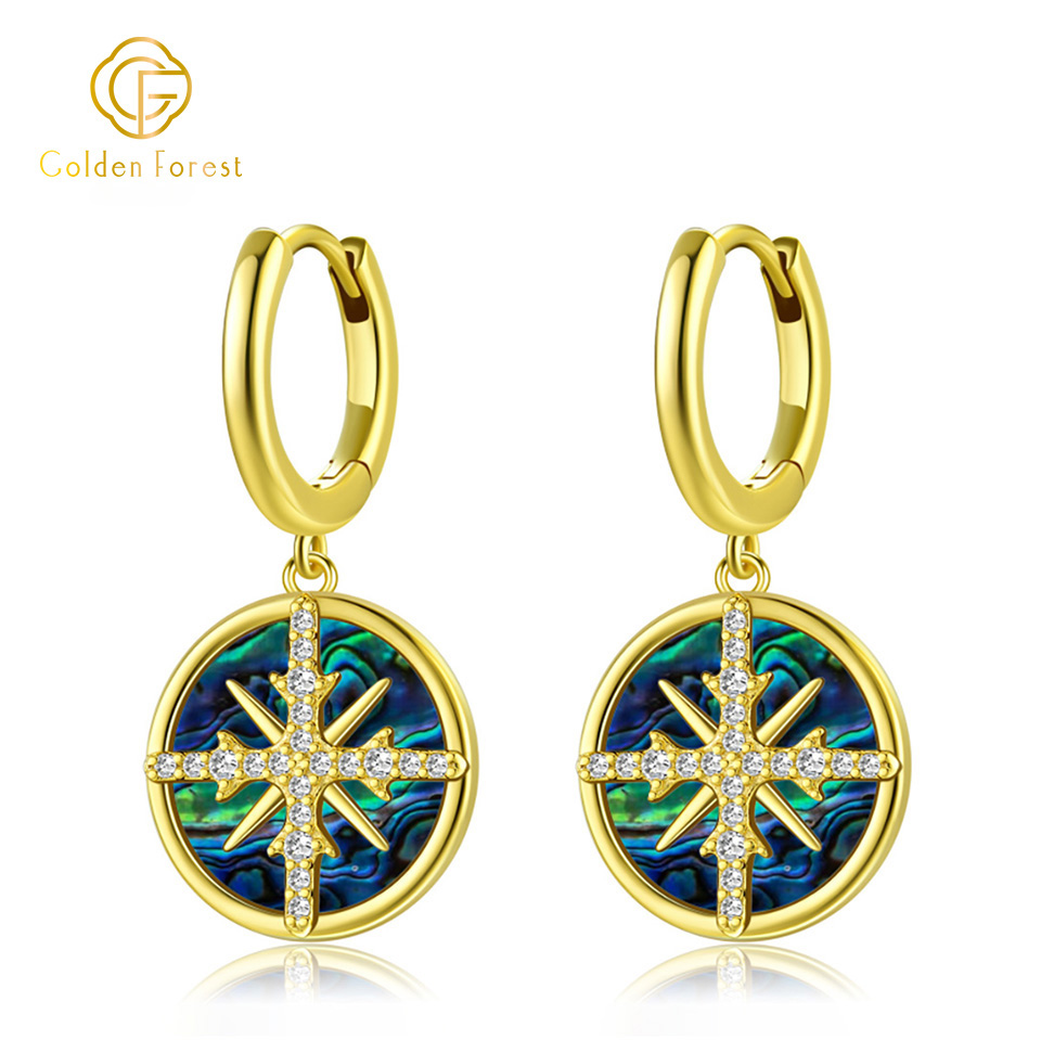 The centerpiece of each piece is a circular mother – of – pearl (MOP) inlay, available in white, black, and green. Atop the MOP, a striking starburst design, embellished with sparkling cubic zirconia (CZ) stones, adds a touch of glamour and geometric charm.