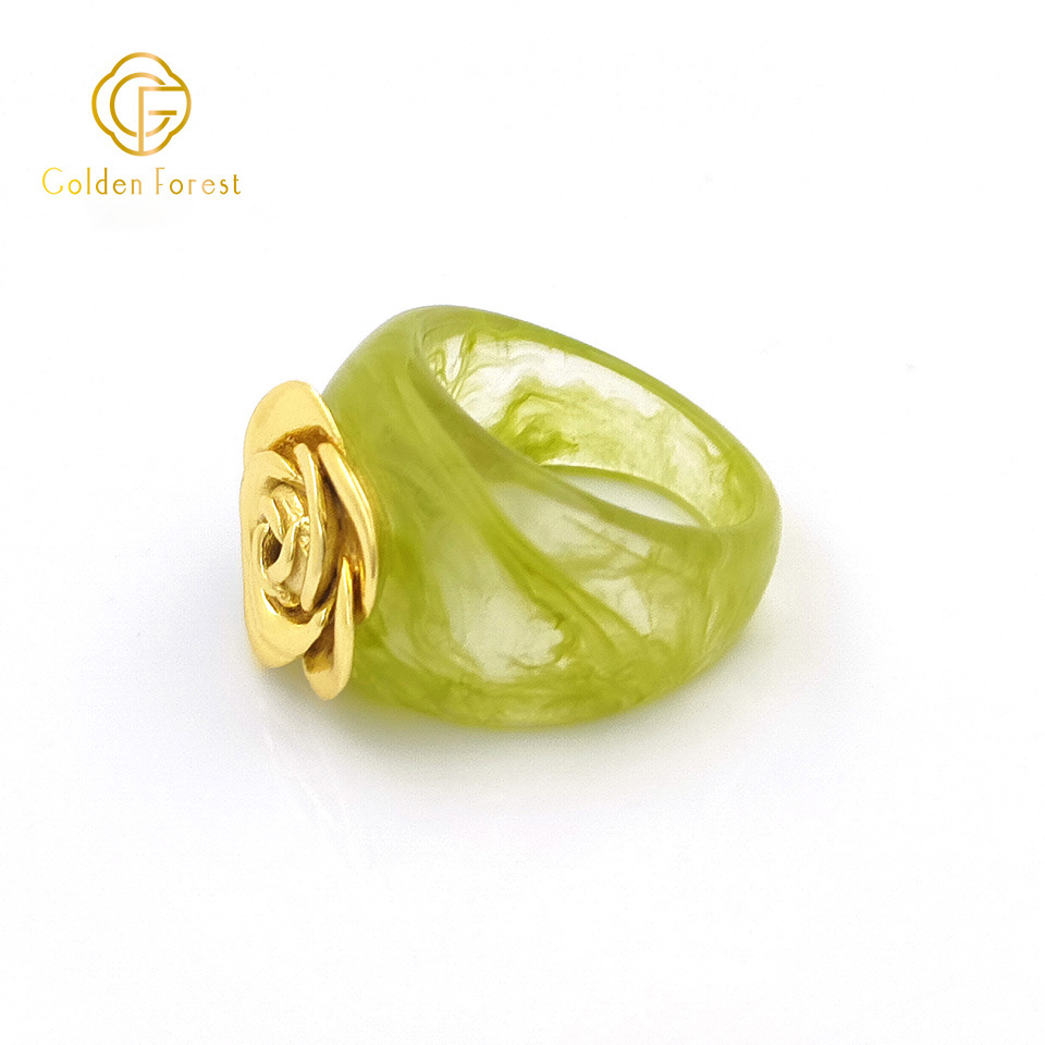 This unique ring combines 925 sterling silver, gold – plating, and a resin band. The centerpiece is a beautifully crafted gold – plated rose, adding a touch of elegance.