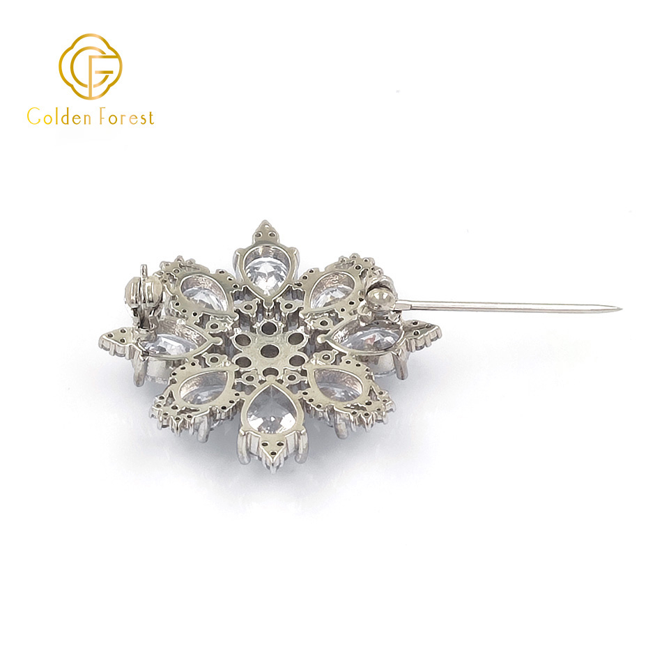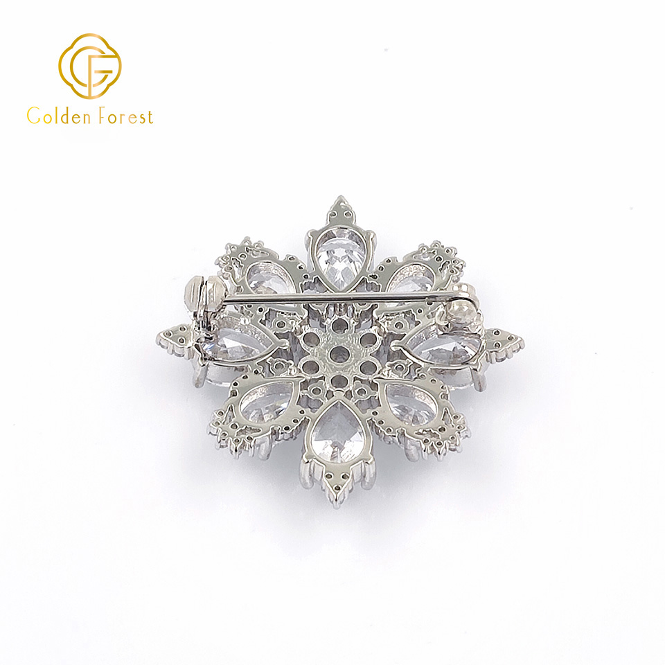 Tailored for elegance seekers, this brooch features a snowflake design adorned with cubic zirconia on a silver – toned base.