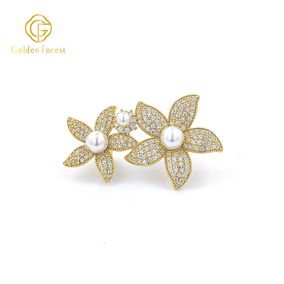 Designed for women, it features two flower shapes with pearls and diamond – encrusted petals on a gold – toned base.