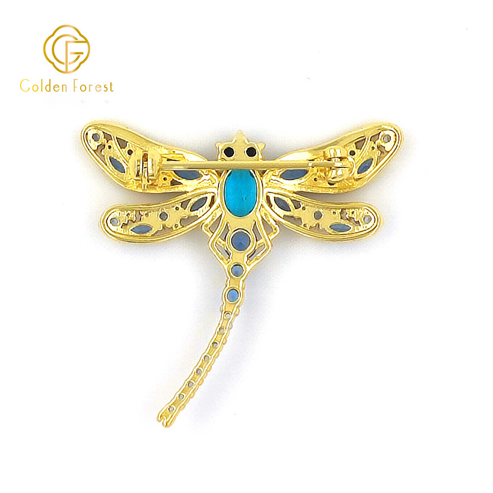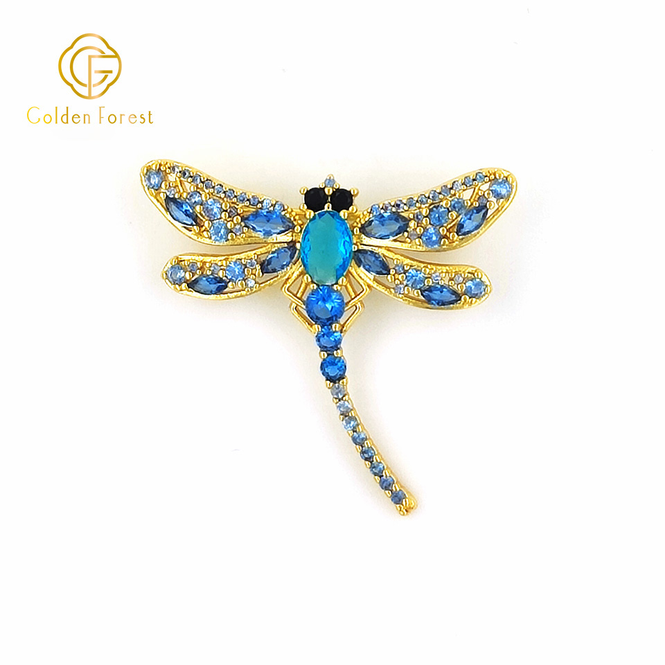 Designed for fashion lovers, this brooch features a dragonfly shape adorned with blue gemstones on a gold – toned base.