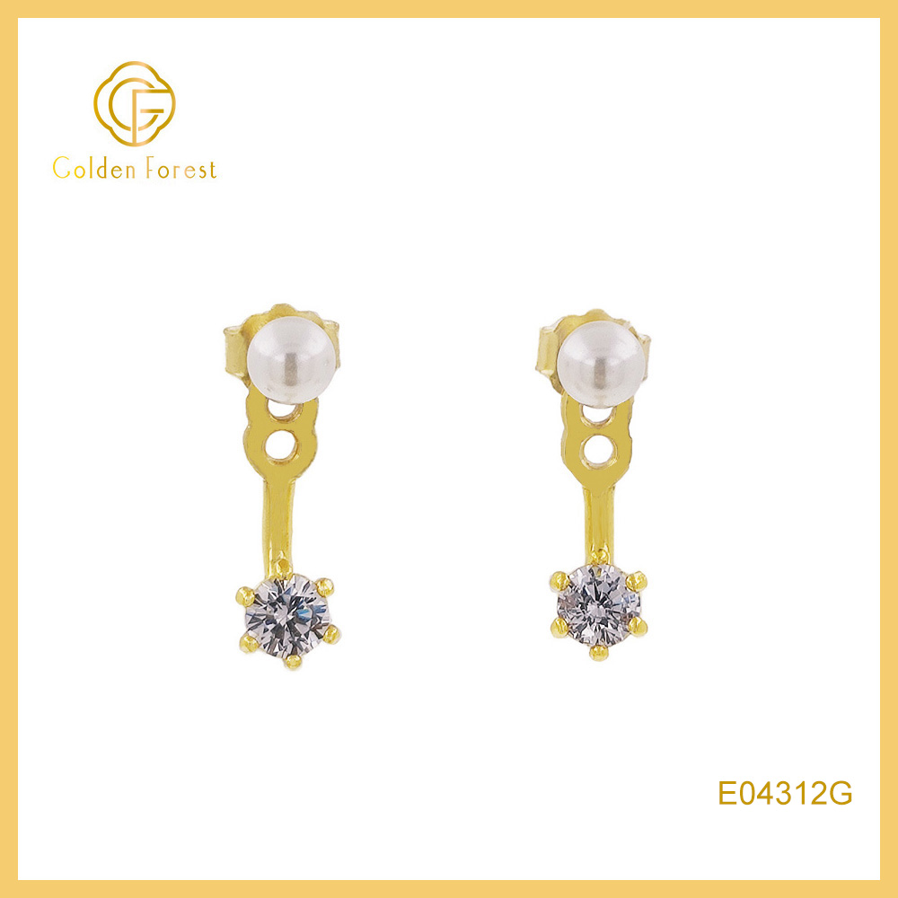 Wholesale CZ Freshwater Pearl Front Back Studs Gold Plated Drop Earrings