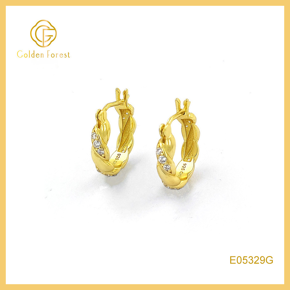 Vintage Twist Hoops Zirconia in Gold Plated 925 Silver